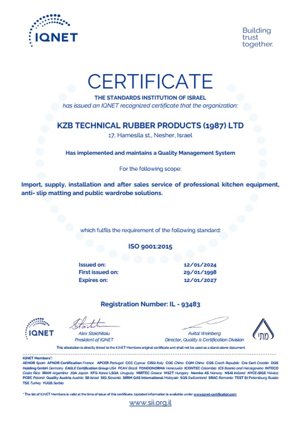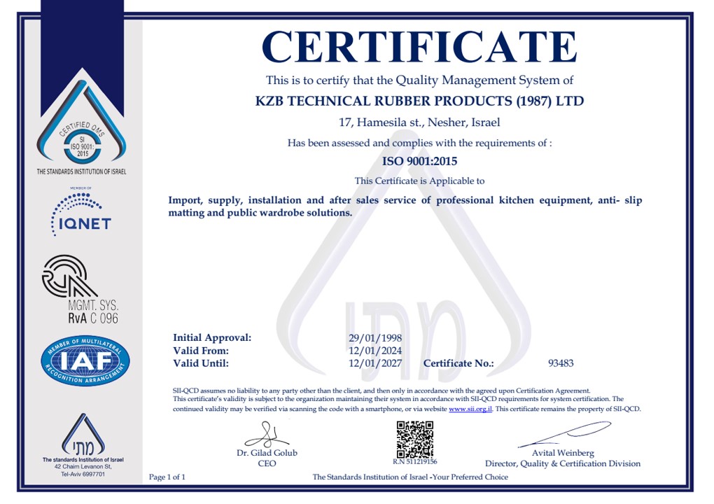 חברת קצב מוצרי גומי טכניים (1987) בע”מ פועלת, בכל תחומי עיסוקה, בכדי להבטיח ללקוחותיה את המוצרים האיכותיים ביותר, בכל תחומי עיסוקה, תוך הקפדה יתרה על שביעות רצונם ועמידה במועדי האספקה להן התחייבה. בנוסף, במסגרת פעילותה בתחום הציוד למטבח המקצועי, מציעה החברה מתן שירות טכני אמין, מקצועי, ומהיר ללקוחותיה.